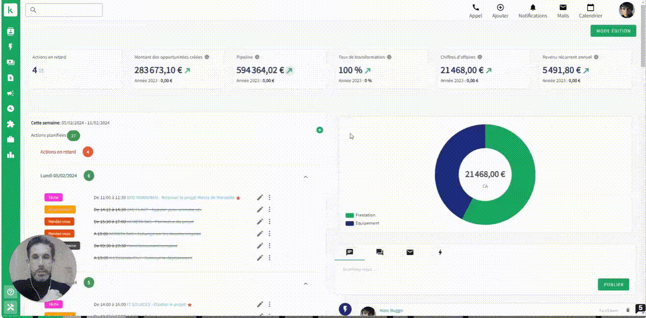 Les tableaux de bord et indicateurs du CRM offrent une vision claire et en temps réel de votre activité : taux de conversion, opportunités en cours, performances commerciales…