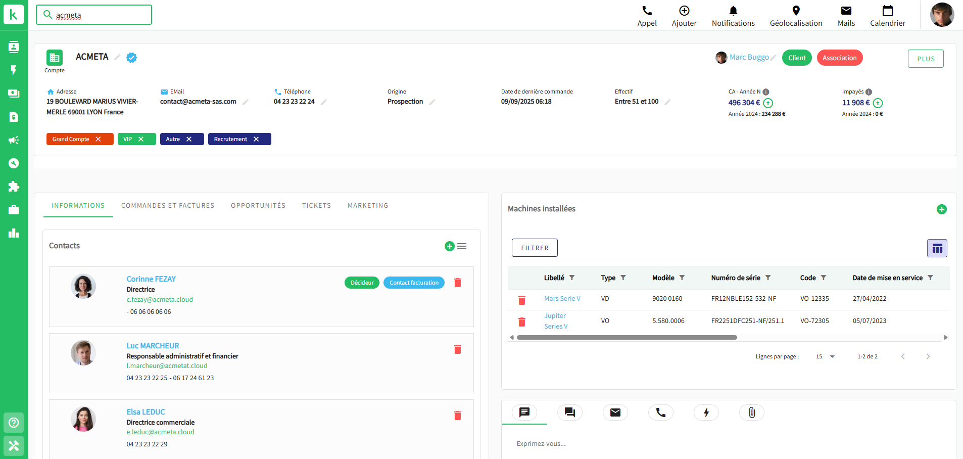 Dans Koban, vous pouvez retrouver toutes les interactions sur les fiches comptes/contacts