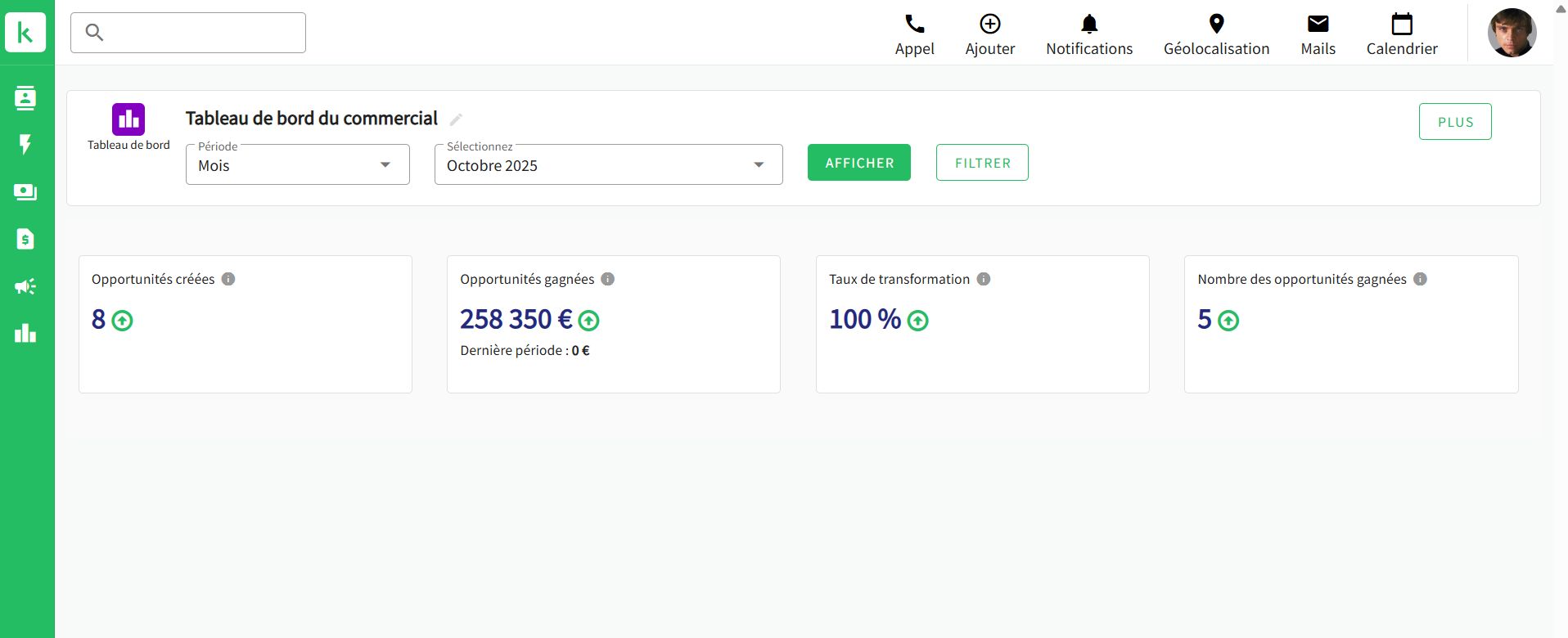 Vous pouvez personnaliser pour chaque utilisateur, chaque commercial, les données et objectifs qu’il souhaite suivre afin d’avoir les idées au clair.